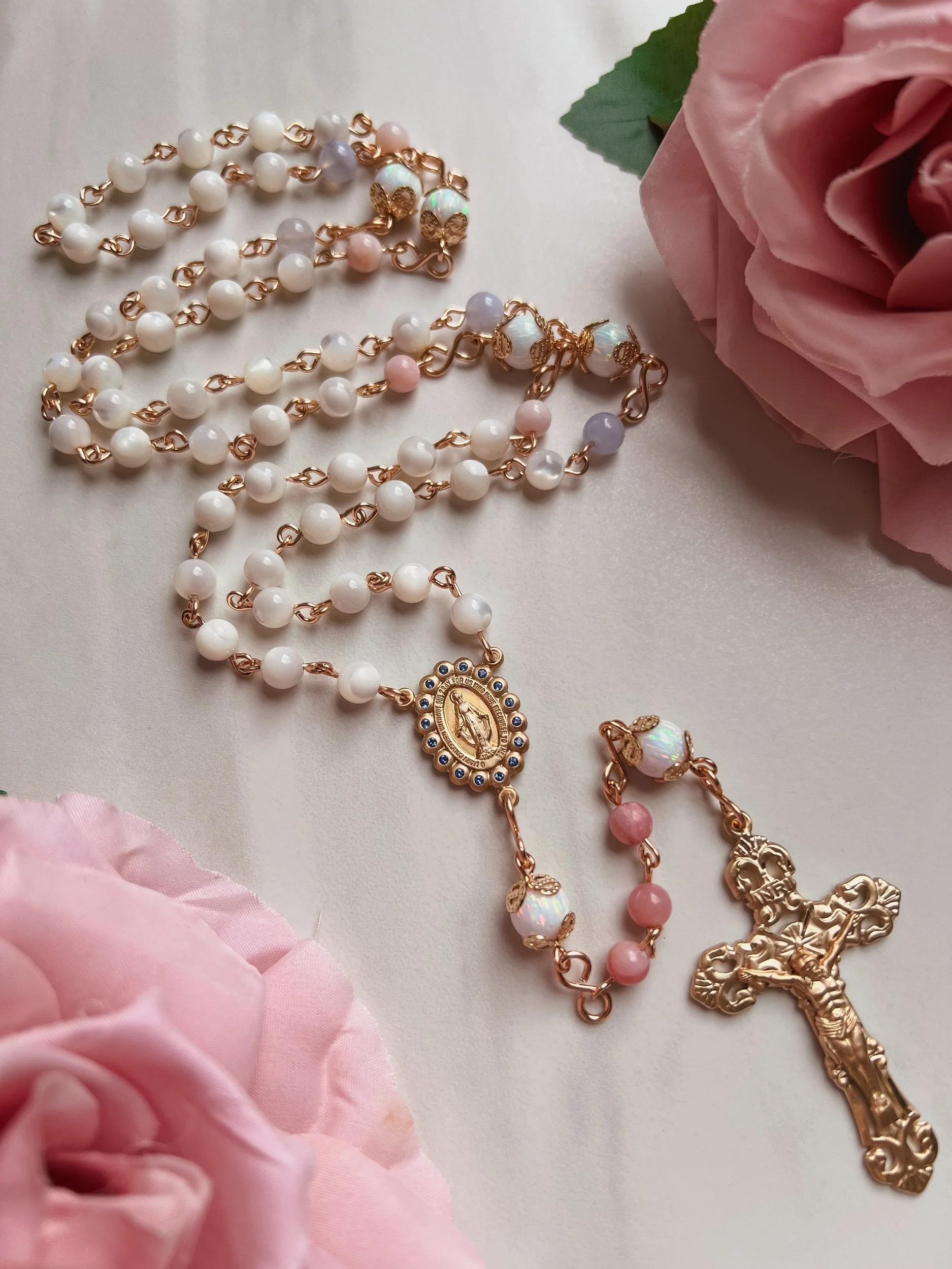 We use high-quality materials to create rosaries that last through many prayers. Gemstone beads resist scratching, chipping, wear, and are unique and beautiful - no two are the same! We mostly work with bronze, sterling, gold-filled, and 14k gold metal for strength, durability, and longevity.