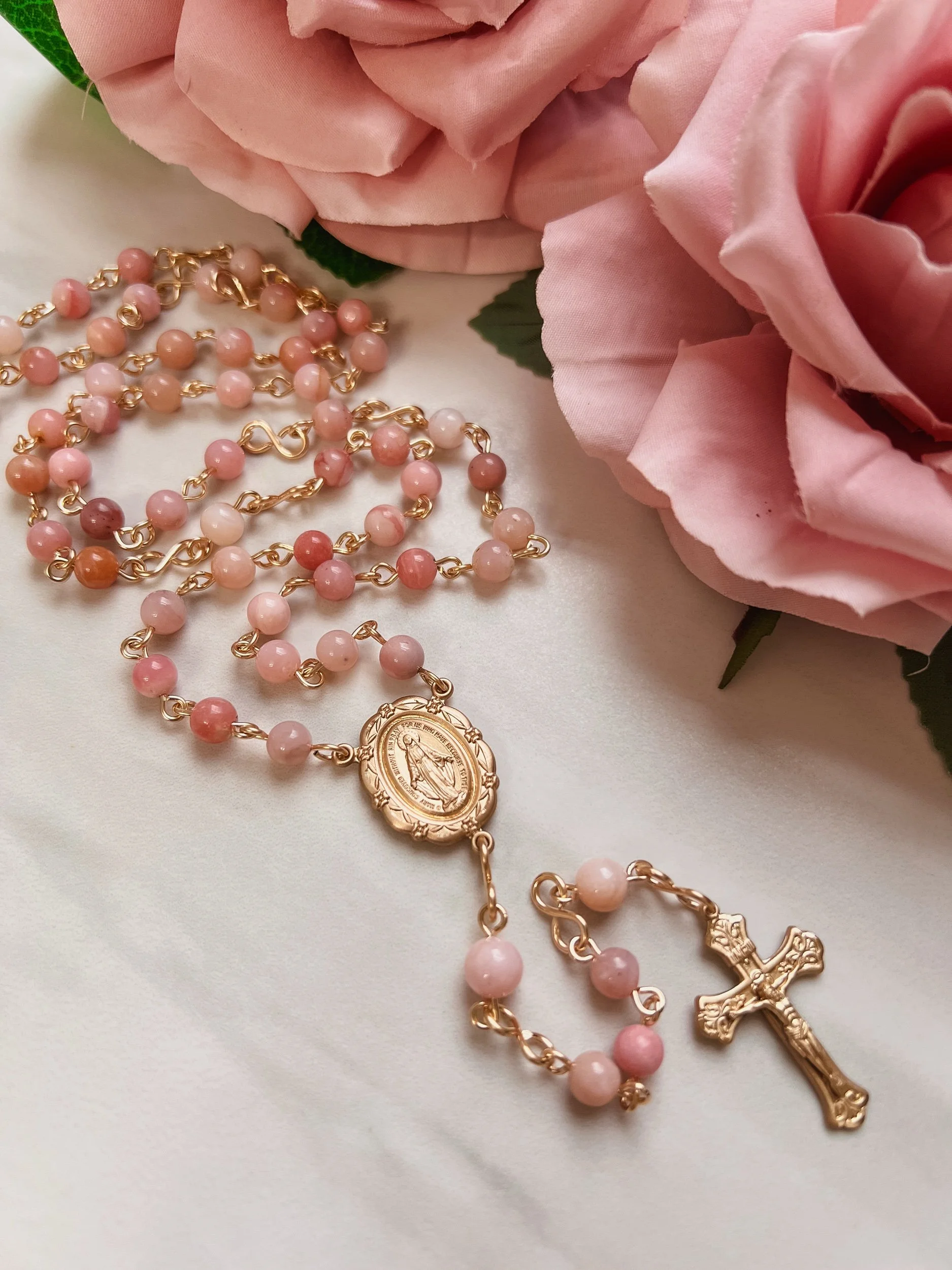 Kunzite and White Opal Rosary with Our Lady of Guadalupe